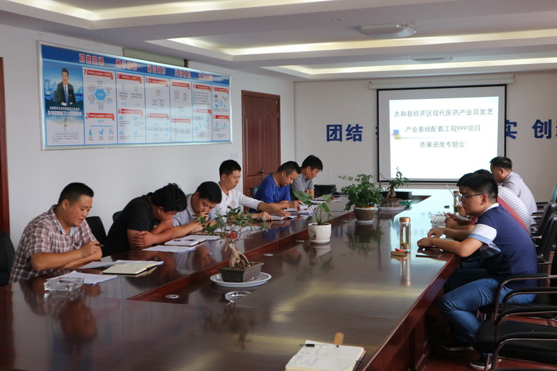 7月4日,太和縣安建投資有限公司召開太和PPP項目管理工作專題會部署該項目下一階段工作。項目公司總經理高偉,項目公司各部門主要負責人,安徽二建太和PPP項目經理部及各工區負責人參加會議。會議由安建投資公司副總經理、項目公司董事長朱友良主持。