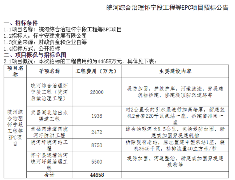 懷寧安建發展有限公司順利完成皖河綜合治理EPC項目招標