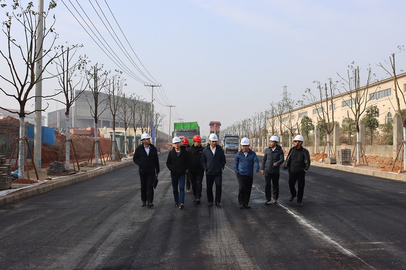 朱忠明一行深入孵化器項目和市政路網子項施工現場,詳細查看施工總體進度,并就歲末年初項目建設各項工作具體安排與有關人員充分交流。