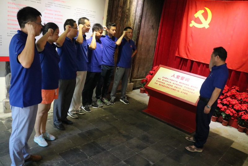 紅色教育活動(dòng)在位于浙江省長(zhǎng)興縣的新四軍蘇浙軍區(qū)紀(jì)念館內(nèi)開(kāi)展。該館原為新四軍十六旅四十八團(tuán)司令部機(jī)關(guān)的駐地,2008年被授予“全國(guó)愛(ài)國(guó)主義教育示范基地”。參加活動(dòng)的全體黨員首先在紀(jì)念碑前整齊列隊(duì),向革命先烈鞠躬敬禮,并在鮮紅的黨旗下進(jìn)行入黨宣誓,重溫入黨誓詞。隨后,大家在講解員的帶領(lǐng)下參觀了革命紀(jì)念館,認(rèn)真觀看了館內(nèi)陳列的革命文物、領(lǐng)導(dǎo)人活動(dòng)圖片以及當(dāng)時(shí)使用的武器裝備等,講解員重點(diǎn)向全體黨員介紹了革命先烈的英雄事跡。