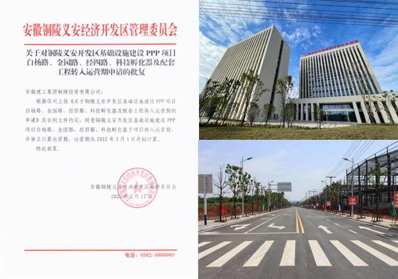 近日,由安徽建工投資建設的銅陵PPP項目白楊路、金園路、經四路、科技孵化器及配套工程經政府方批復正式投入運營。
