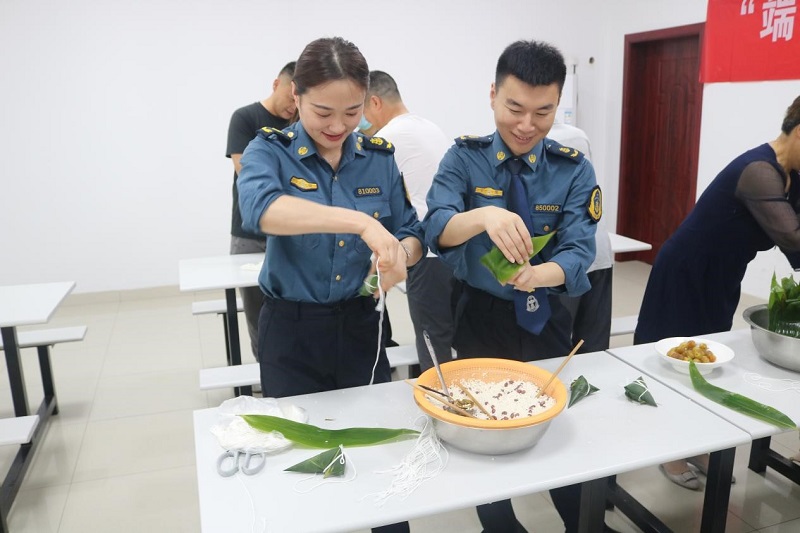 項目公司員工和收費站工作人員一起淘糯米、洗粽葉,有經驗的員工從捋粽葉、填糯米、裝蜜棗到綁線繩,手把手給大家傳授包粽子的技藝,淡淡的粽葉香伴著歡聲笑語,營造了濃濃的節日氛圍。大家還紛紛說著自己家鄉的端午風俗,體會到了傳統文化的深刻魅力。