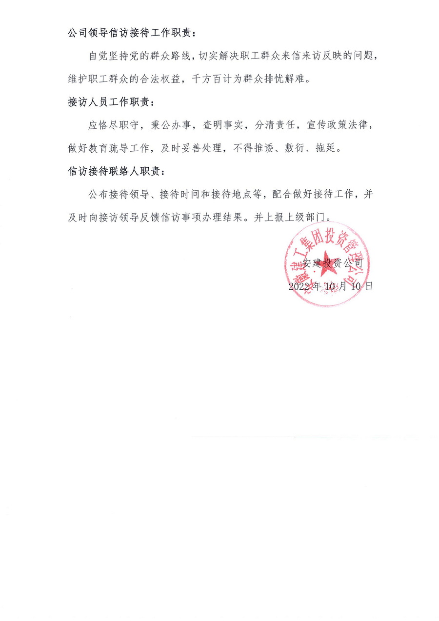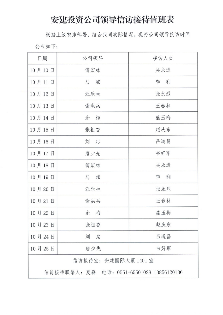 安建投資公司領導信訪接待值班表
