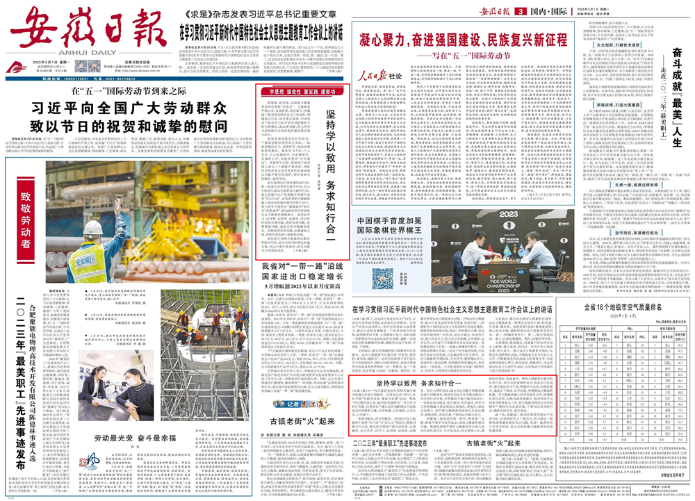 5月1日,安徽日報以《堅持學以致用 務求知行合一》為題關注報道安徽建工集團主題教育開展情況。以下是報道部分內容: