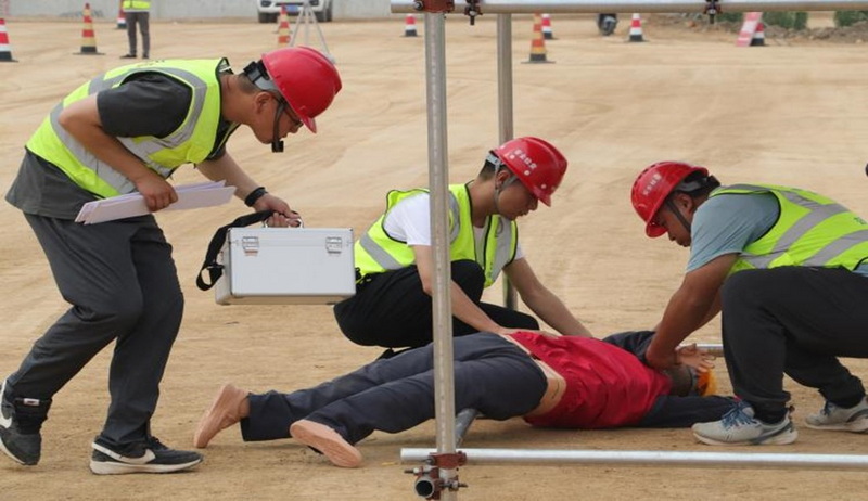 演練模擬建筑施工高空墜落安全事故,各小組迅速啟動安全應急預案,按照處置程序,落實救援措施,順利完成了演練內容。整個演練過程緊張有序,分工明確,措施正確得當,達到了檢驗預案、鍛煉隊伍、安全宣傳的目的。演練活動后,項目公司組織召開了現場分析總結會。