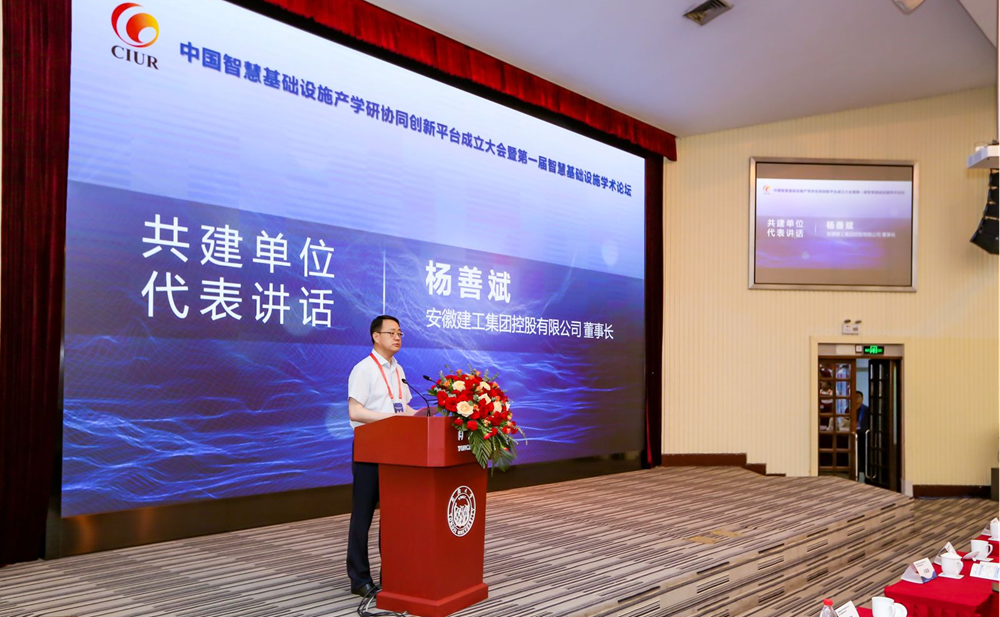 5月19日,安徽建工集團(tuán)黨委書記、董事長楊善斌赴同濟(jì)大學(xué)出席中國智慧基礎(chǔ)設(shè)施產(chǎn)學(xué)研協(xié)同創(chuàng)新平臺成立大會暨第一屆智慧基礎(chǔ)設(shè)施學(xué)術(shù)論壇,并代表平臺共建單位交流發(fā)言。