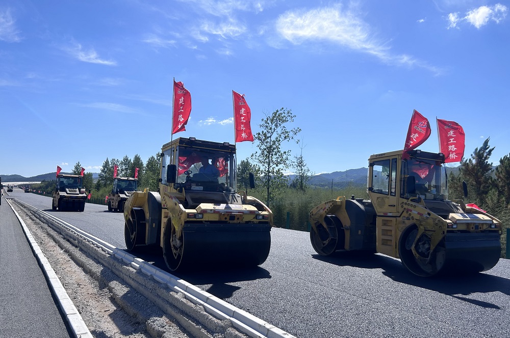 【勞動競賽進行時】建工投資涇青高速路面瀝青攤鋪進入規模化施工