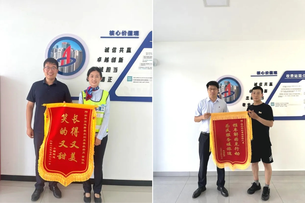 徐淮阜高速蕭縣北及淮北西收費站接連收到司乘人員贈送的錦旗,安徽高速“96566”服務熱線收到對淮北西收費站工作人員的表揚電話,智慧監(jiān)控中心也收到對司乘人員的感謝電話,一次暖心助困、一次熱情服務、一個真誠微笑都展現(xiàn)出全體建工高速人的堅守與擔當。