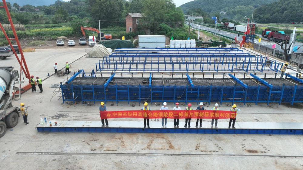 澆筑新起點,架設新征程!建工投資S40寧樅高速銅陵段首片預制箱梁成功澆筑